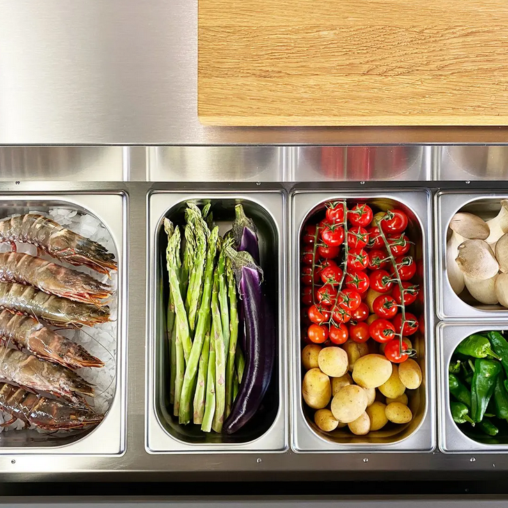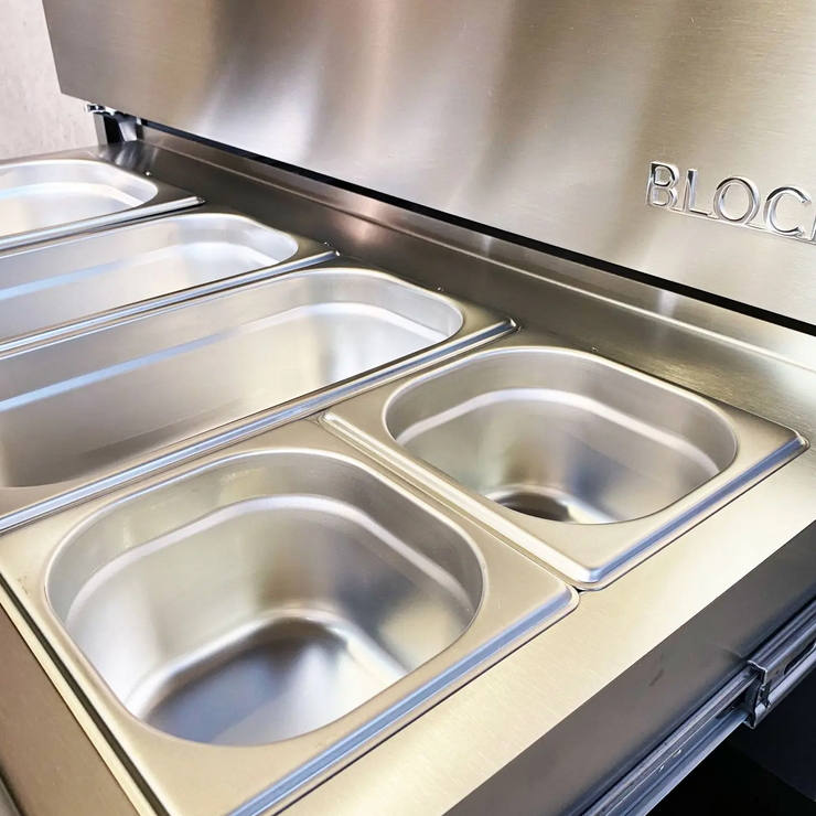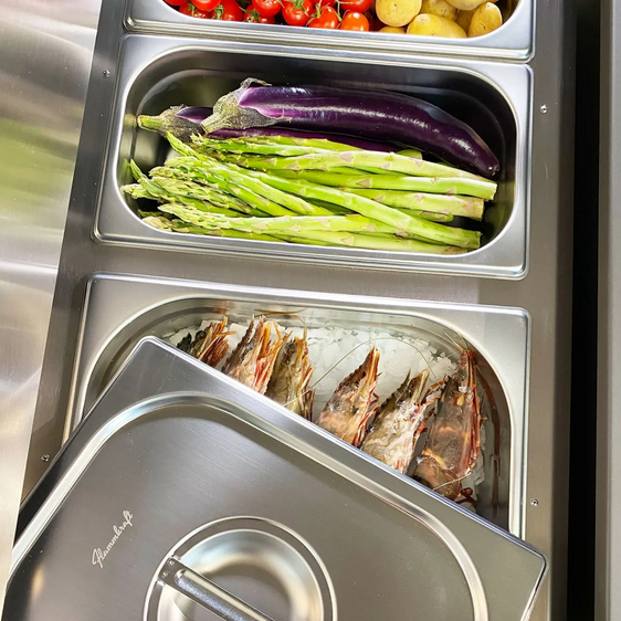 - Besonders stabile Edelstahlbehälter (Gastronorm)