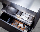 - Geräumige Schubladen mit gebürsteten Edelstahl-Fronten