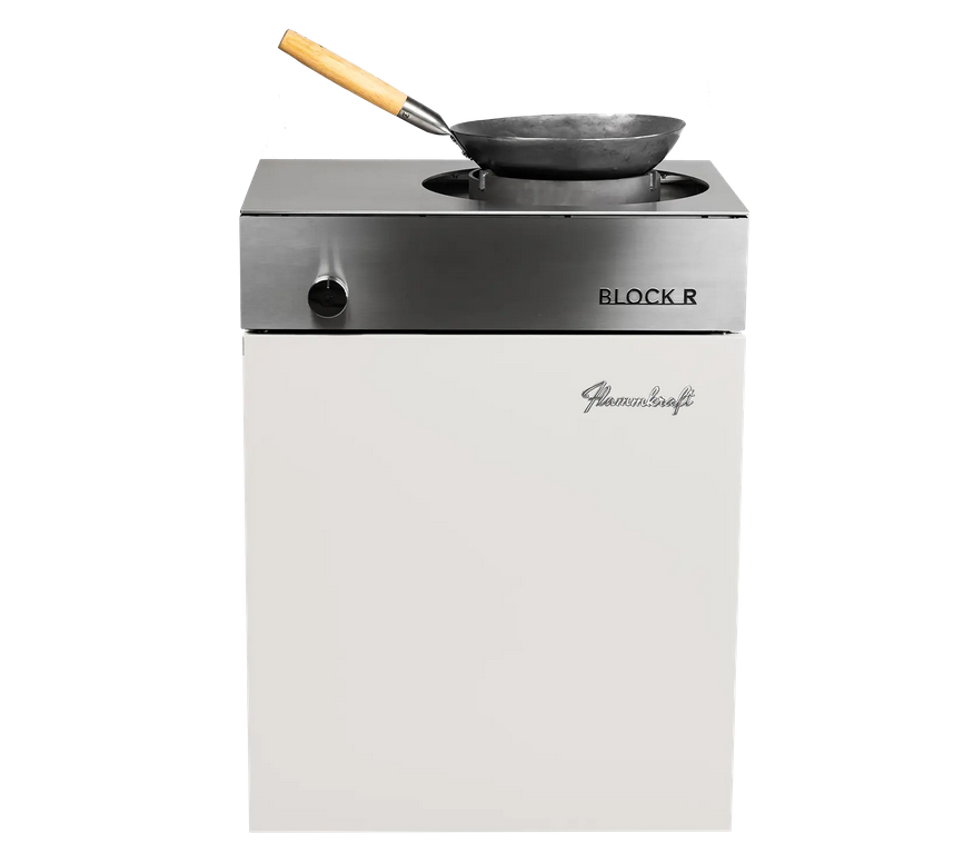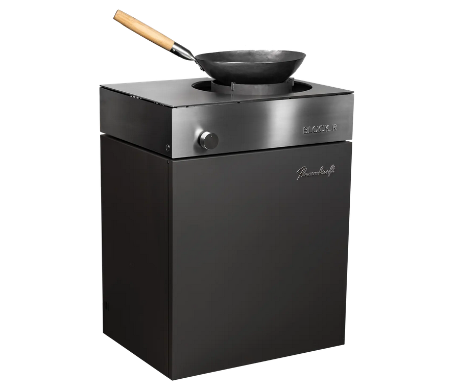 Der Block R liefert maximale Kraft auf kleinstem Raum in der Outdoor-Küche. Der Flammkraft-Wokbrenner liefert 17 kW Leistung und ermöglicht so die Nutzung eines Wok auf höchstem Niveau.
