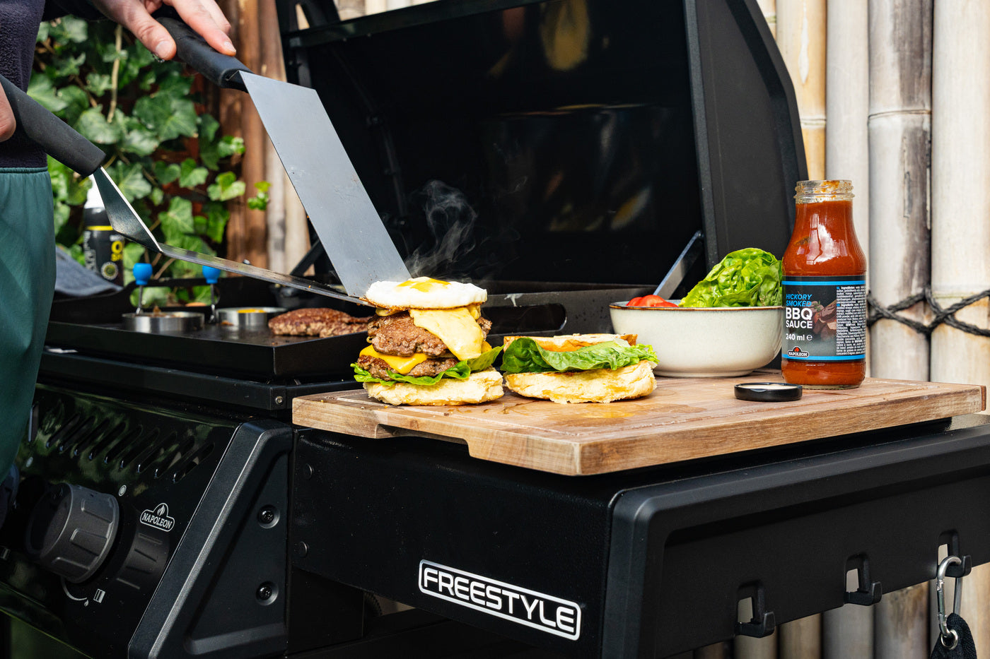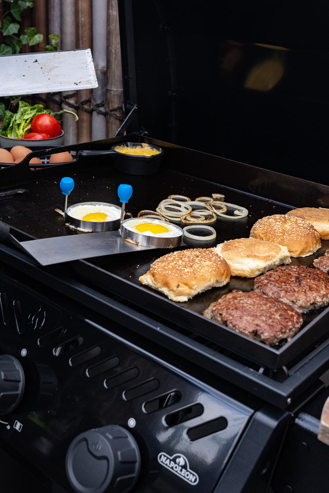 Der Napoleon Freestyle™ Plancha ist ein vollwertiger Grill für alle, die neue Wege beim Outdoor-Grillen gehen wollen. Fisch, Garnelen, Gemüse, Spiegeleier oder sogar Pancakes gelingen auf der glatten Edelstahlfläche (60 × 44 cm) besonders schnell, aromatisch und saftig. Drei Brenner mit insgesamt bis zu 7,65 kW sorgen für eine gleichmäßige Hitzeverteilung – perfekt für kreative Ideen unter der Woche oder entspannte Abende mit Gästen. Die Plancha ist pflegeleicht, komfortabel ausgestattet und kompakt im Design – ideal auch als stilvolle Ergänzung zum klassischen Gasgrill. Klappbare Seitenablagen mit integriertem Flaschenöffner, eine große, leicht zu reinigende Fettauffangwanne und eine langlebige Edelstahl-Grillplatte machen den Umgang besonders unkompliziert. Der Freestyle™ Plancha ist die ideale Wahl für alle, die Wert auf Vielseitigkeit, Qualität und unkomplizierten Grillgenuss legen – ob als Hauptakteur oder smarte Erweiterung im Garten.