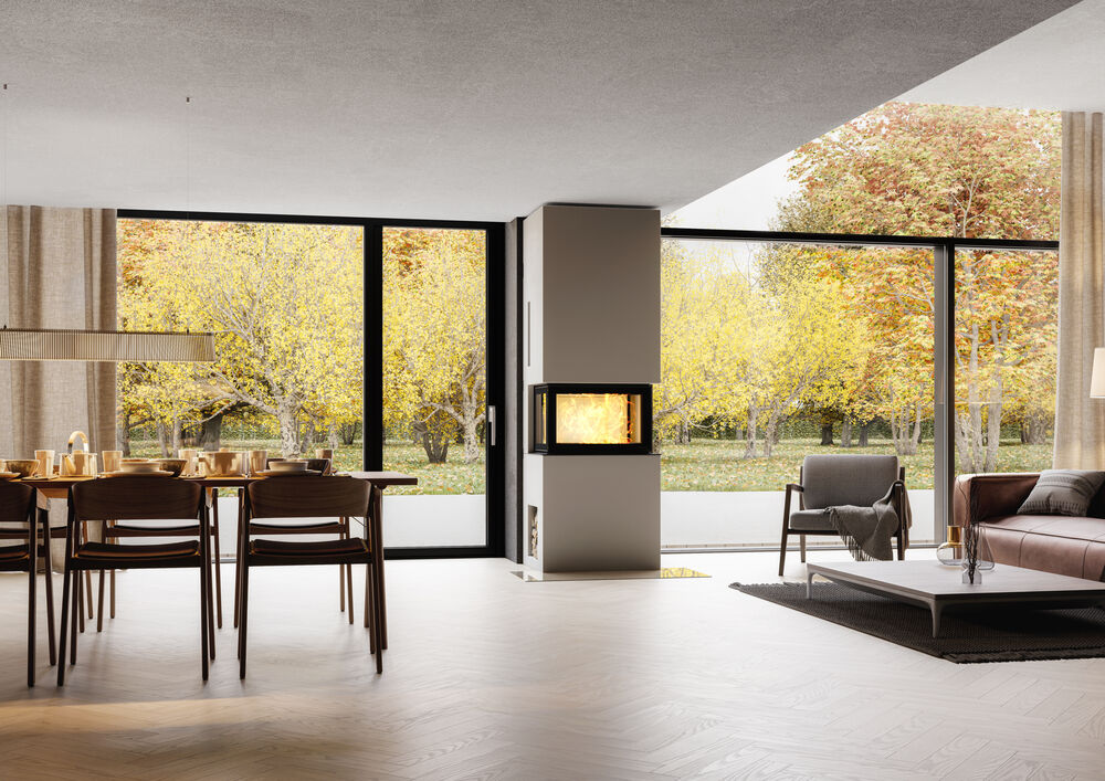Genève U ist eine Kaminanlage, die es wagt, Platz einzunehmen – perfekt für größere Räume, in denen sie wirklich zur Geltung kommt. Das Modell ist als raumhohe Ausführung konzipiert. Bei der Kombination aus klarem Design und einer beeindruckenden dreiseitigen Sicht auf die Flammen besteht kein Zweifel, dass Genève U zu einem Schmuckstück in Ihrem Zuhause wird. Dank der stilvollen Holznische unter dem Heizeinsatz können Sie das Holz in der Nähe lagern, ohne das Interieur zu beeinträchtigen.