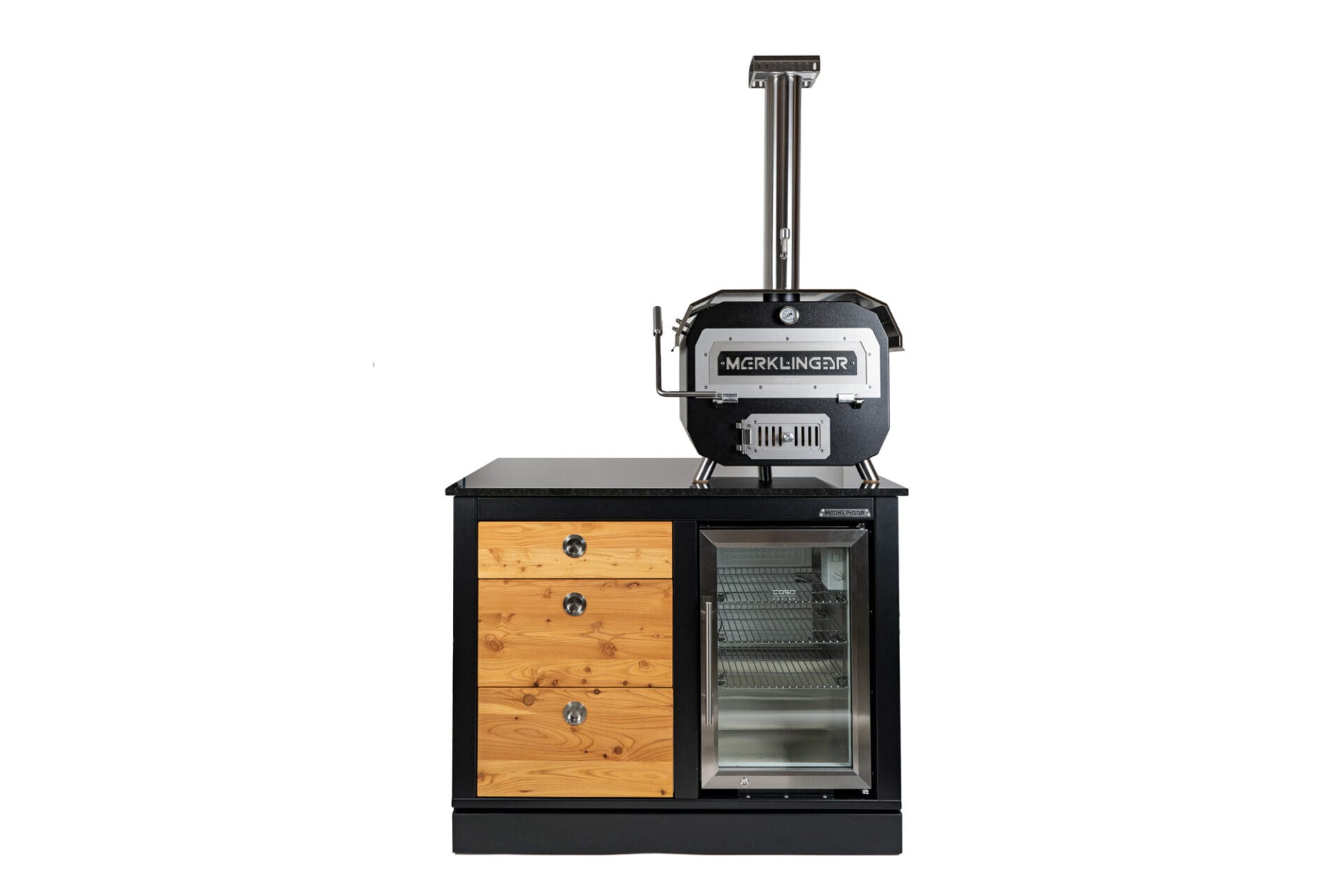 Für deine Merklinger Outdoorküchen-Welt: Das neue Merklinger Outdoor Modul mit integriertem Kühlschrank. Kühle deine Getränke, Teige und Speisen direkt neben deinem Merklinger im hochwertigen Outdoor Kühlschrank mit LED Beleuchtung, insgesamt 63 Liter Lagervolumen, 3 herausnehmbaren Einlegeböden und 3-lagigem Isolier-Sicherheitsglas mit UV-Filter. Durch die große Arbeitsfläche von 118 x 78 cm aus Granit und dem großzügigen Stauraum mit drei Schubladen hast du dein Zubehör und Holz griffbereit. Robust, hochwertig und praktisch, wie du es von uns gewohnt bist.