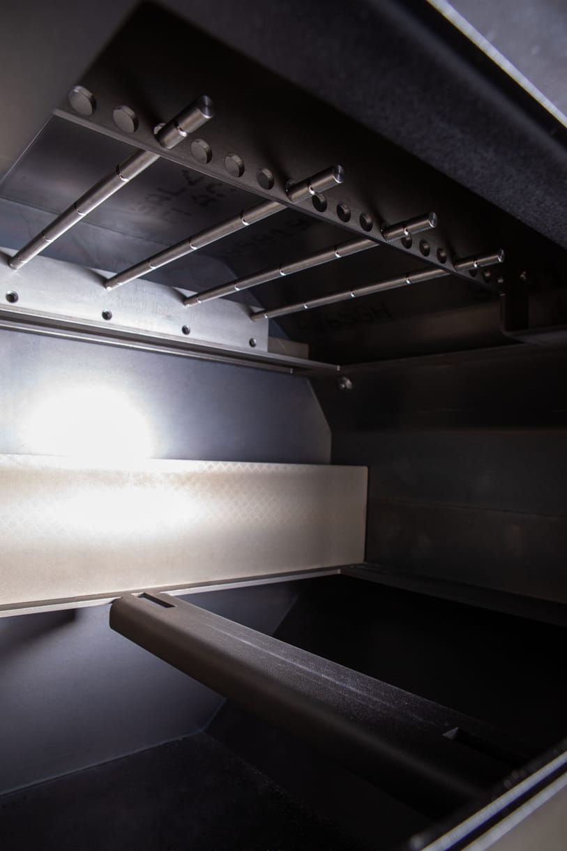 Wenn man mal mehr räuchern will. Der Merklinger Räuchereinsatz bietet Platz für 20 Forellen oder Fleischstücke. Er ist einfach im oberen Innenraum des Ofens einzusetzen.