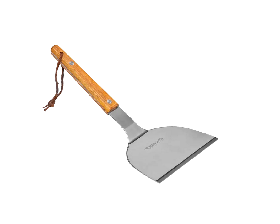 Mit der Palette aus Edelstahl mit Bambusgriff kannst Du sowohl dein Grillgut auf der MONOLITH Feuerplatte wenden als auch die Feuerplatte von Fett und Resten säubern.