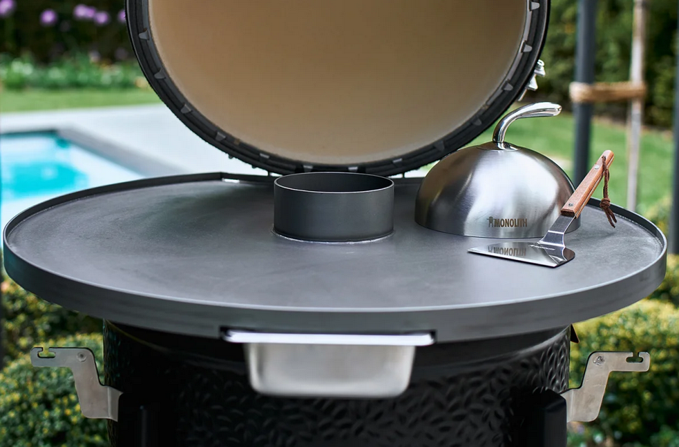 Erweitere jetzt deinen Traditionellen Kamado um die kulinarische Palette des Plancha-Grillens: Die Feuerplatte aus solidem, 8 mm dickem Stahl, die für eine außerordentliche Hitzespeicherung entwickelt wurde. Erlebe unterschiedliche Zubereitungsmöglichkeiten mit verschiedenen Temperaturzonen, für alle Gerichte, die auf einem Grillrost nicht möglich sind. Die Feuerplatte ist speziell für den .55 (CLASSIC) gestaltet und hat eine Abdichtung zum Keramikrand an der Unterseite. Da sich auf der Rückseite der Platte eine Aussparung befindet, musst du den Deckel des .55 (CLASSIC) nicht abnehmen. Die Feuerplatte steht etwa 13 cm über den Rand des .55 (CLASSIC) hinaus. Das sorgt für ein Temperaturgradienten von der Mitte bis zum Rand. Auf diese Weise kannst du auf der großen Fläche verschiedene Gerichte gleichzeitig zubereiten. In der mittigen „Hot-Zone“ kannst du dein Essen scharf anbraten, während du es am Rand langsam auf die richtige Kerntemperatur bringen oder warmhalten kannst. Die Feuerplatte hat zudem eine Aussparung für einen GN 1/16 Gastrobehälter, der als Fettauffangbehälter dient. Das erleichtert die Reinigung erheblich. Hinweis vom Hersteller: Es wird empfohlen, die Platte vor dem ersten Einsatz einzuheizen.