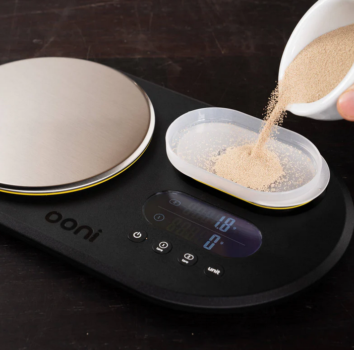 Rationalisieren Sie die Pizzazubereitung, indem Sie die Zutaten auf ein Zehntel Gramm genau abmessen.