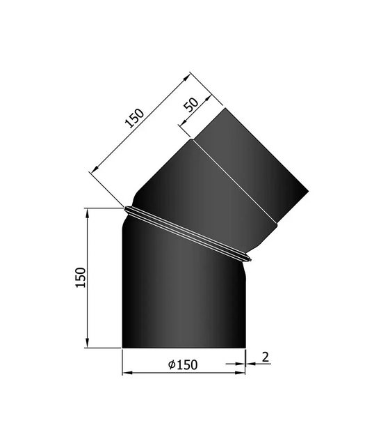 Rauchrohrbogen Ø150mm, 0-45° verstellbar , schwarz