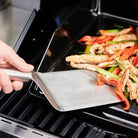 Mit abgerundeten Ecken speziell für den Einsatz auf der Plancha-Grillplatte geeignetMit Rundgriff und Aufhängeöse aus EdelstahlSpülmaschinengeeignet