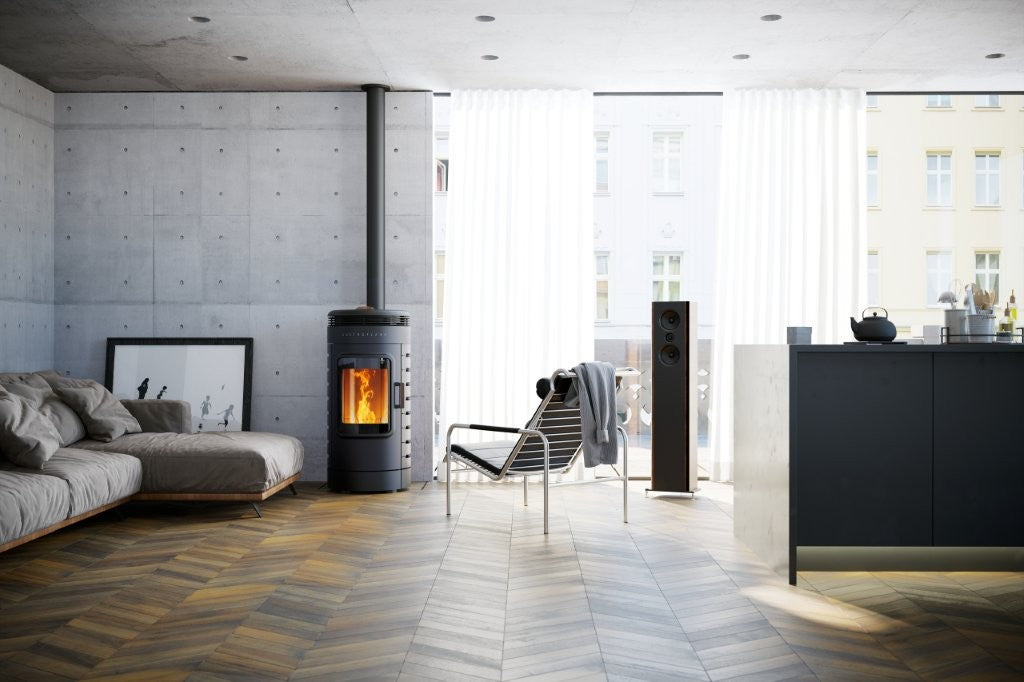 Unser Pelletgerät im neuen innovativem Design - rund & elegant - macht Heizen zu einer sauberen Lösung mit vollem Kaminfeuer Feeling.