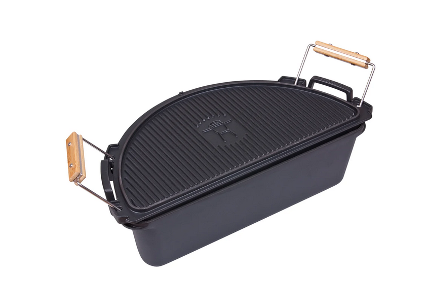 Für eine Vielzahl an Zubereitungsmöglichkeiten beim Grillen ist das SGS Feuertopf Set von MONOLITH für das Smart Grid Grillrostsystem des MONOLITH .55 (CLASSIC) exakt das Richtige. Mit diesem massiven Gusseisentopf in Halbmondform erhältst du ein Zubehör, das bemerkenswerte Wärmespeichereigenschaften aufweist. Von köstlichen Eintöpfen bis hin zu saftigen Braten und knusprigen Broten, alles gelingt dir mit Leichtigkeit. Das SGS Feuertopf Set ist ausgelegt für den Einsatz im MONOLITH .55 (CLASSIC) und besteht aus 4 mm dickem, schwarz emailliertem Gusseisen. Der Deckel ist dabei mehr als nur ein Deckel: Er ist wendbar und kann sowohl glatt als auch geriffelt als Grillplatte fungieren. Inkludiert ist außerdem ein innenliegender Edelstahlrost, der eine zusätzliche Ebene im Topf schafft. Mit diesen Elementen wird dein Keramikgrill im Handumdrehen eine ultimative Outdoor-Küche.